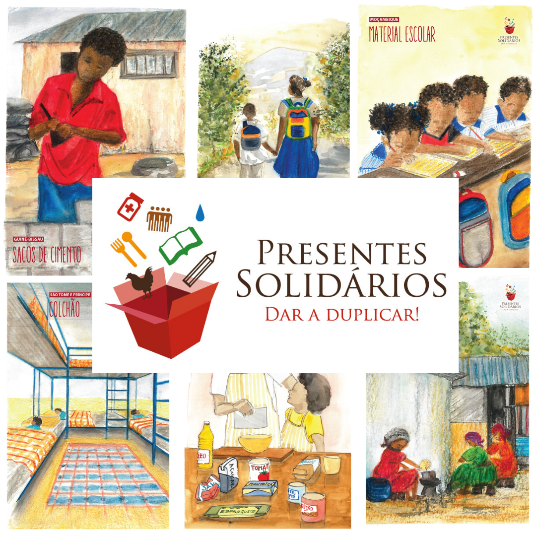 Este ano, com apenas 10€, pode garantir a alimentação básica de uma das 60 famílias apoiadas numa das cidades mais pobres de Mato Grosso, ou, por 29€, oferecer todo o material escolar a uma das 392 crianças deslocadas devido ao conflito em Cabo Delgado, Moçambique. catálogo, estão disponíveis 10 presentes, entre os 8 os 110€, que vão permitir apoiar comunidades nos oito países lusófonos: Angola, Brasil, Cabo Verde, Guiné-Bissau, Moçambique, Portugal, São Tomé e Príncipe e Timor-Leste.